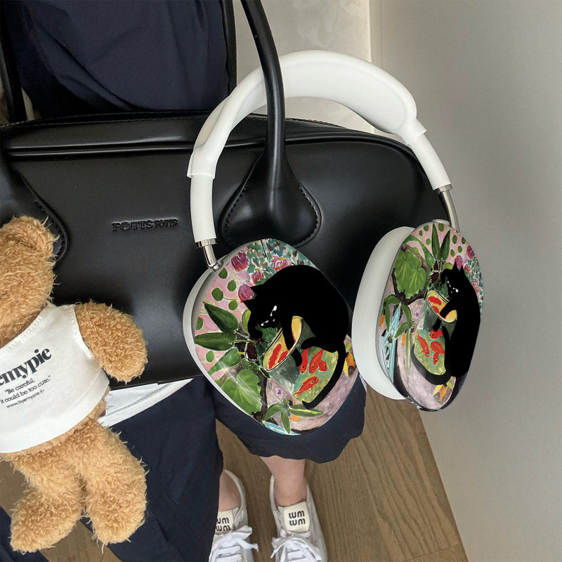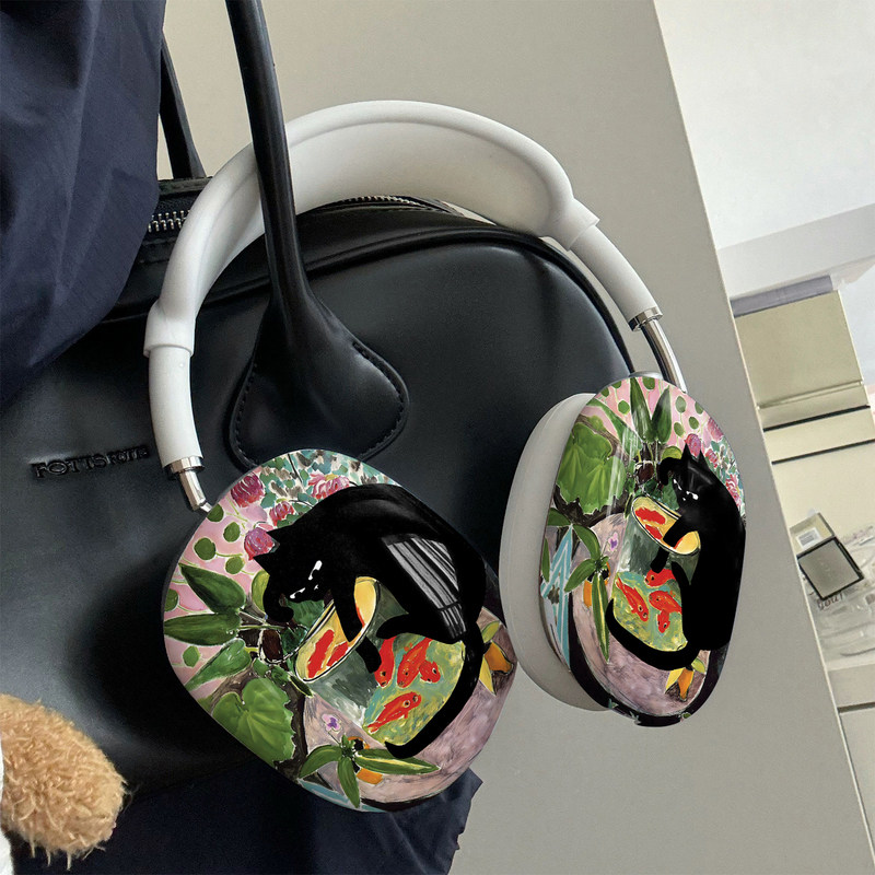 马蒂斯艺术插画黑猫金鱼小众复古画卡通适用于AirPodsMax1/2苹果蓝牙耳机头戴式保护壳耳麦光面磨砂哑光硬壳
