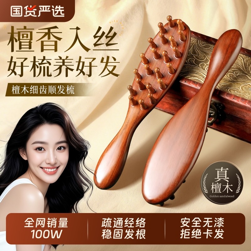 梳子按摩头皮经络檀木按摩梳子女士顺发梳头多功能按摩梳2025新款