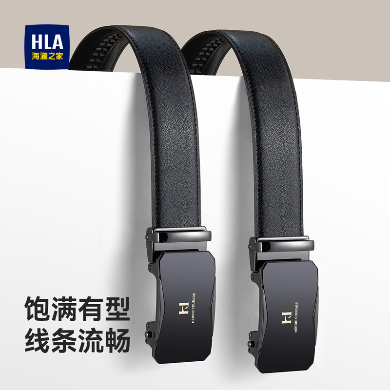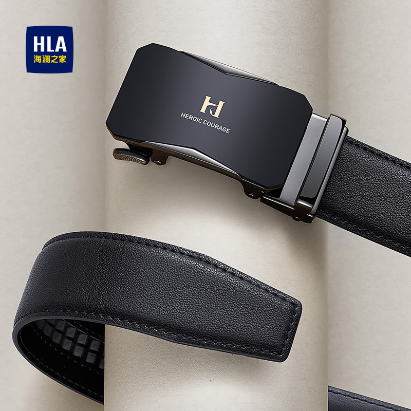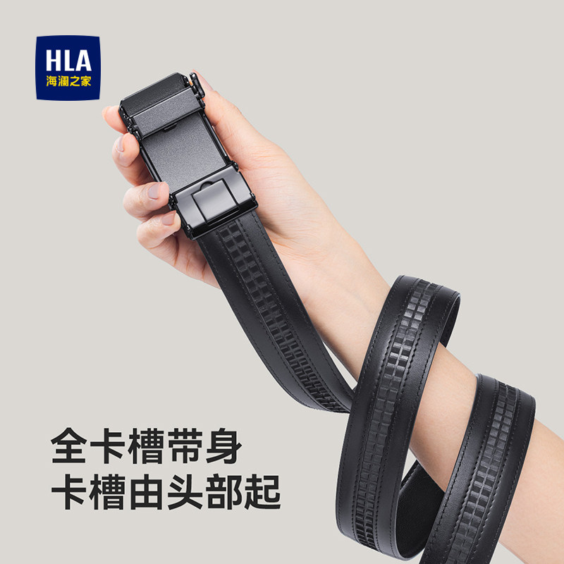 海澜之家全卡槽加长皮带男士2025新款真牛皮自动扣腰带年轻人裤带