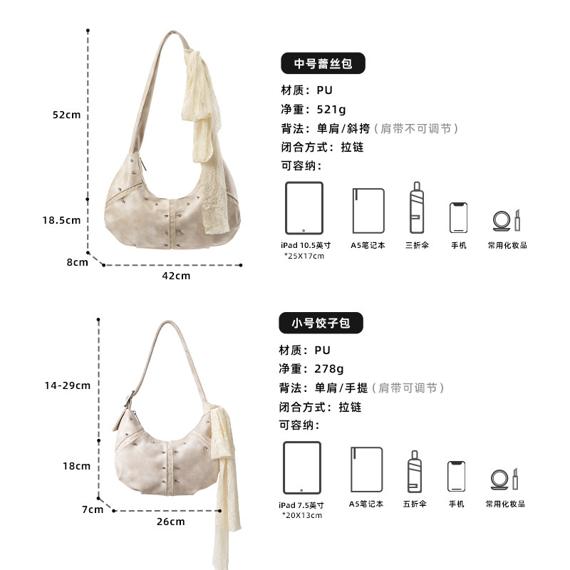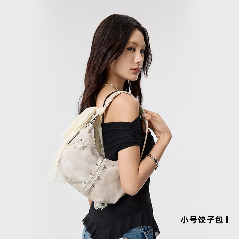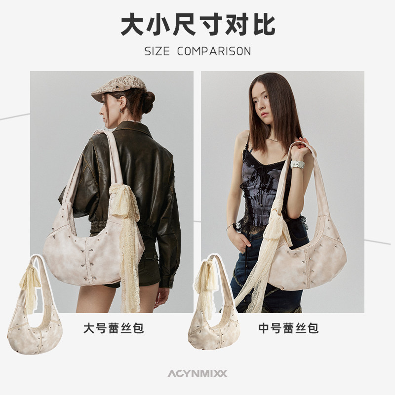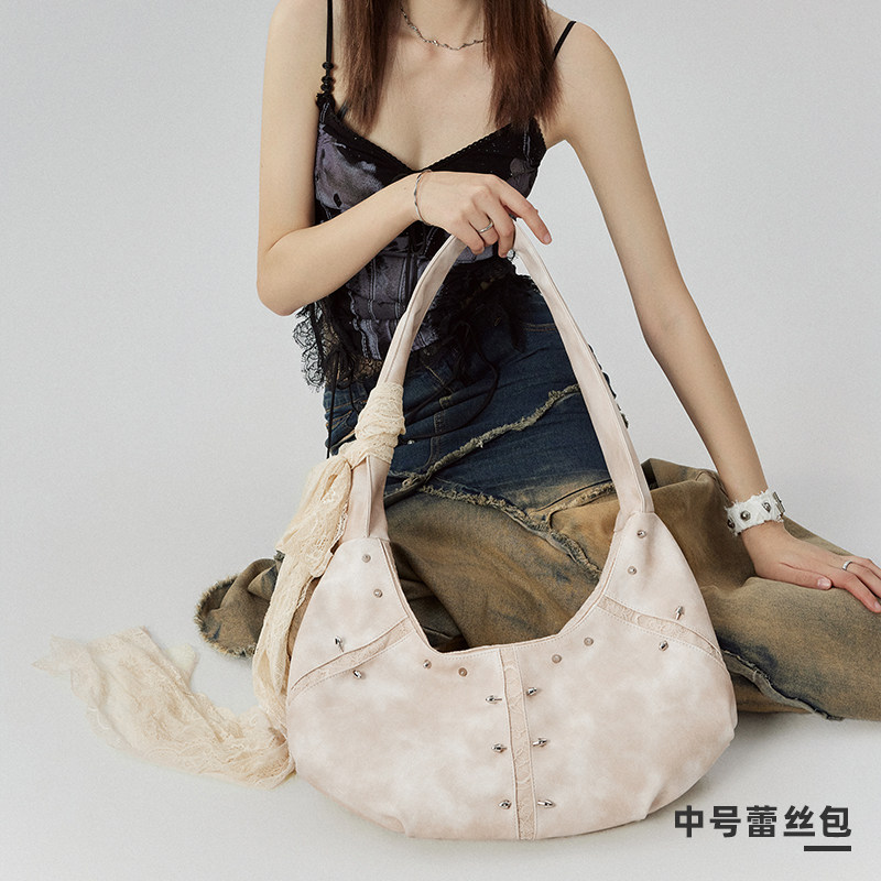 Acynmixx废土风蕾丝包秋冬新款半月饺子包大容量托特包单肩斜挎包