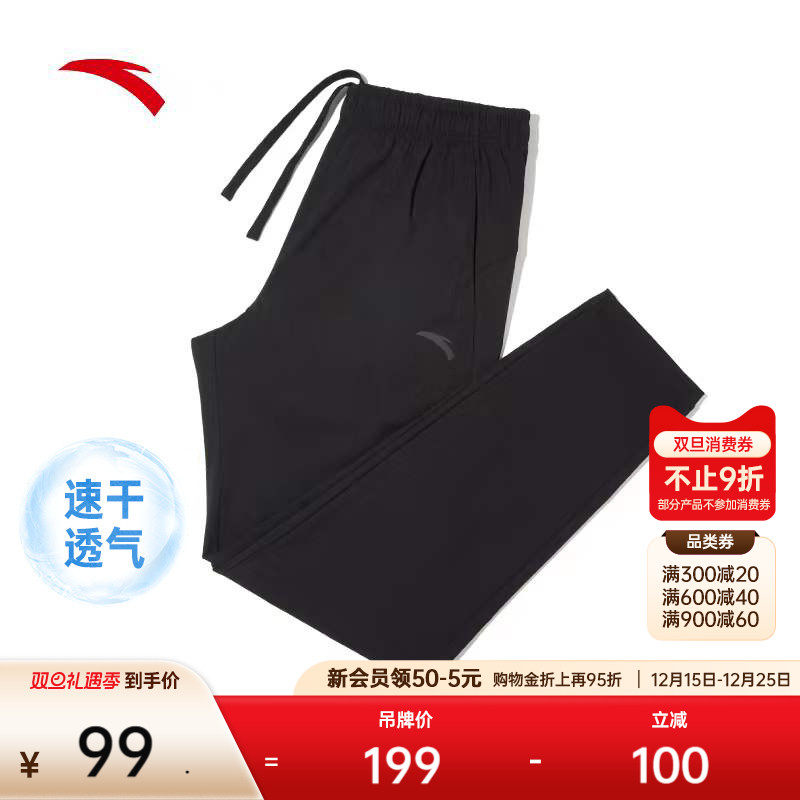 安踏运动裤长裤男士冬季新款梭织跑步训练黑色速干裤直筒裤男裤子