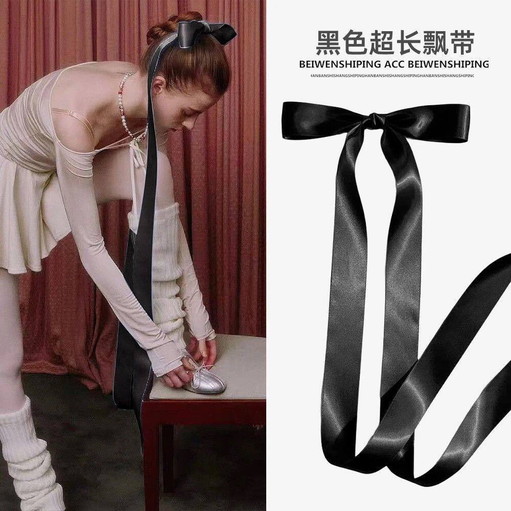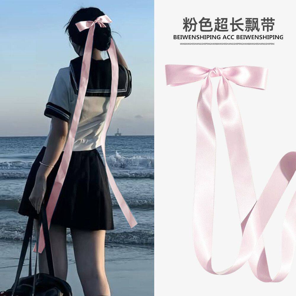 甜美超长飘带蝴蝶结发夹发卡顶夹少女芭蕾风头饰蓝色粉色红色黑色