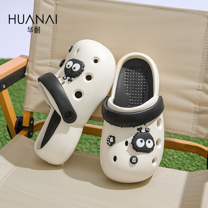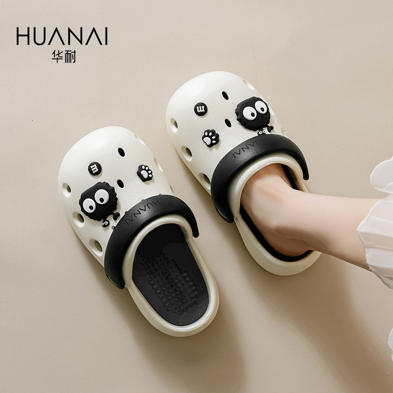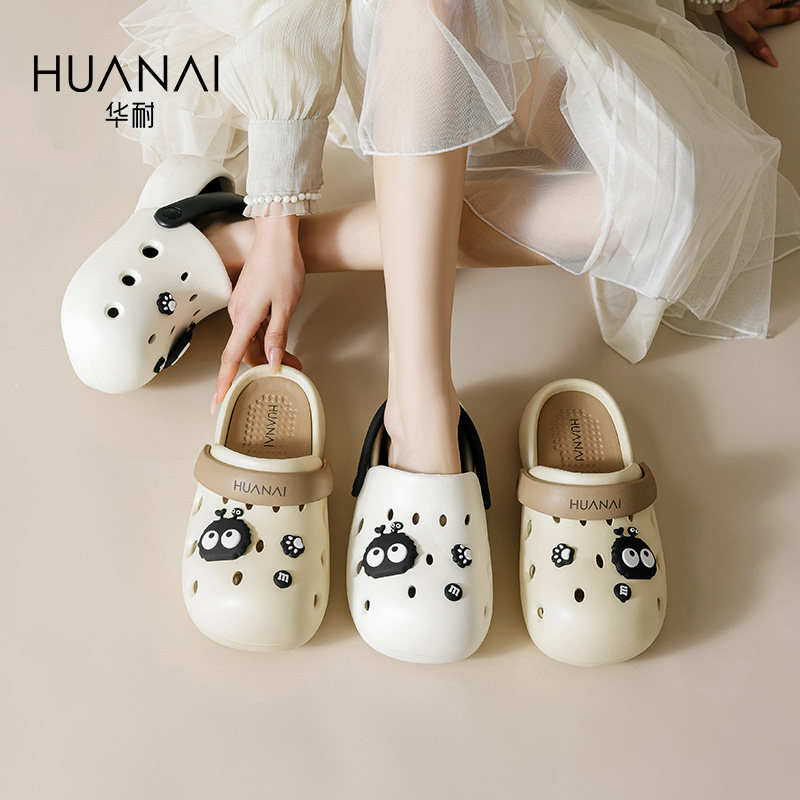 华耐圆头洞洞鞋女款2025新款夏季配饰厚底增高外穿踩屎感包头拖鞋