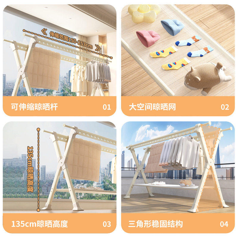 晾衣架落地家用室内折叠凉衣杆挂衣服伸缩晒衣架晾晒被子卧室客厅