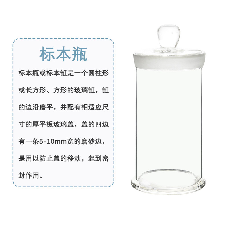 华鸥标本瓶密封玻璃样品瓶磨砂福尔马林浸泡瓶病理瓶实验室动物标本展示瓶干货茶叶储物罐密封罐玻璃展示罐