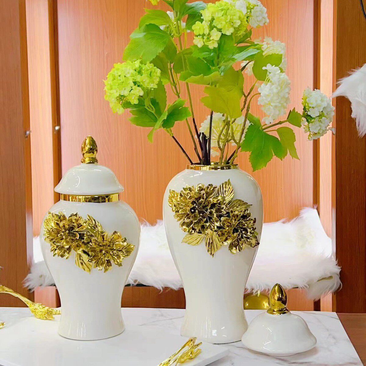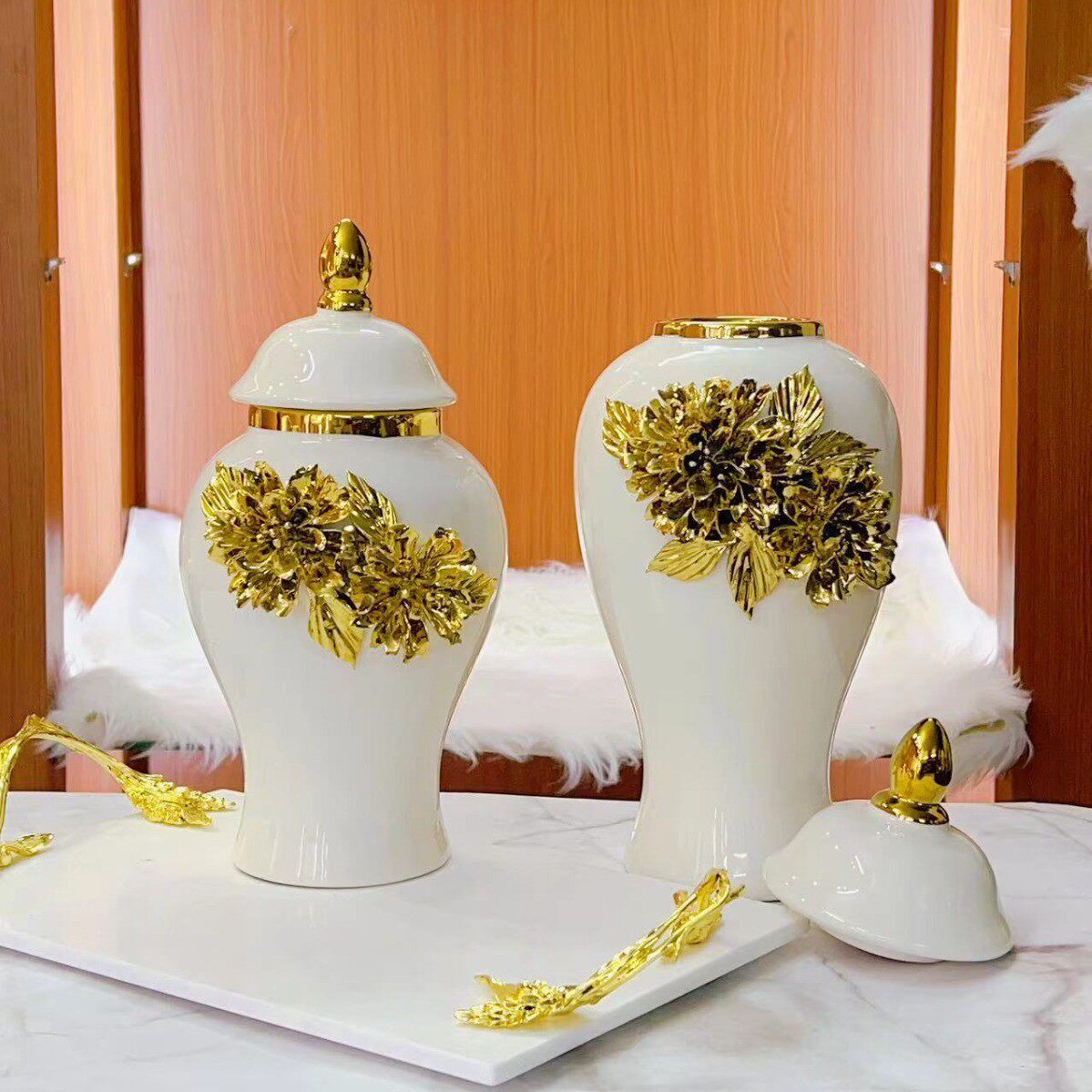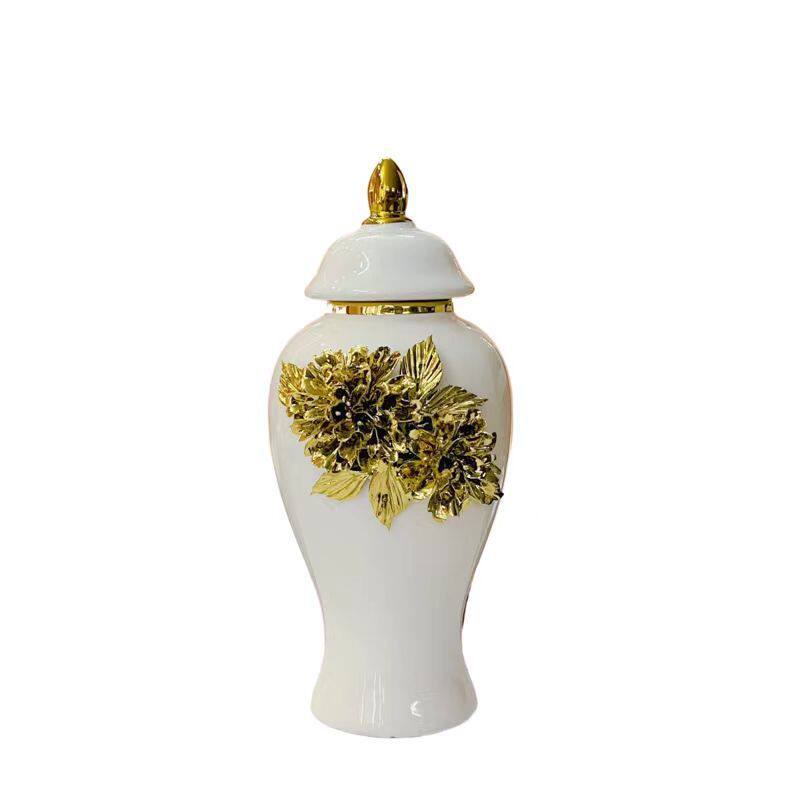 陶瓷新款电镀贴花金色将军罐欧式花插花瓶工艺品摆件装饰储物罐