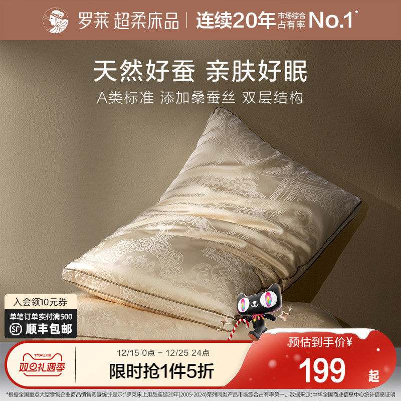 罗莱家纺春夏A类家用大提花桑蚕丝纤柔枕抗菌学生宿舍枕头枕芯