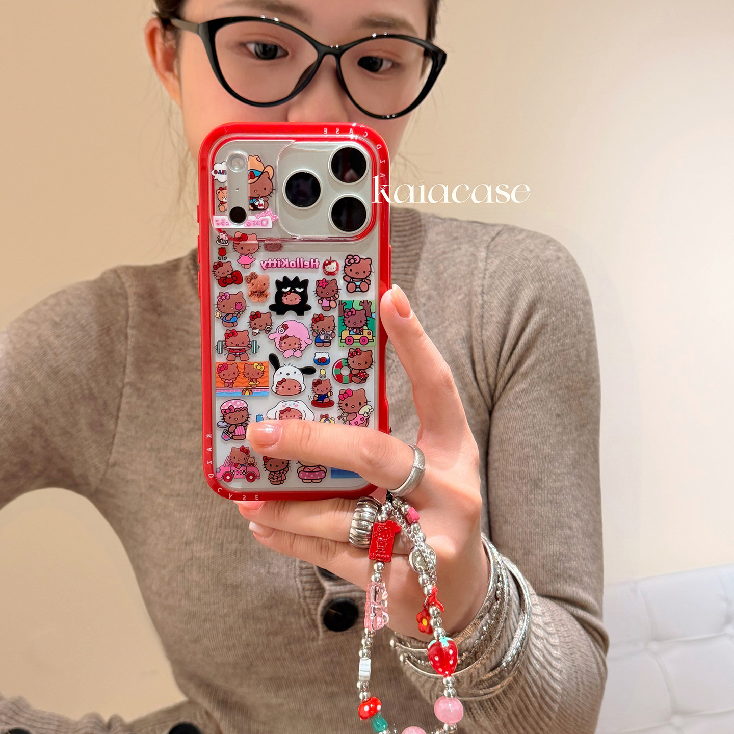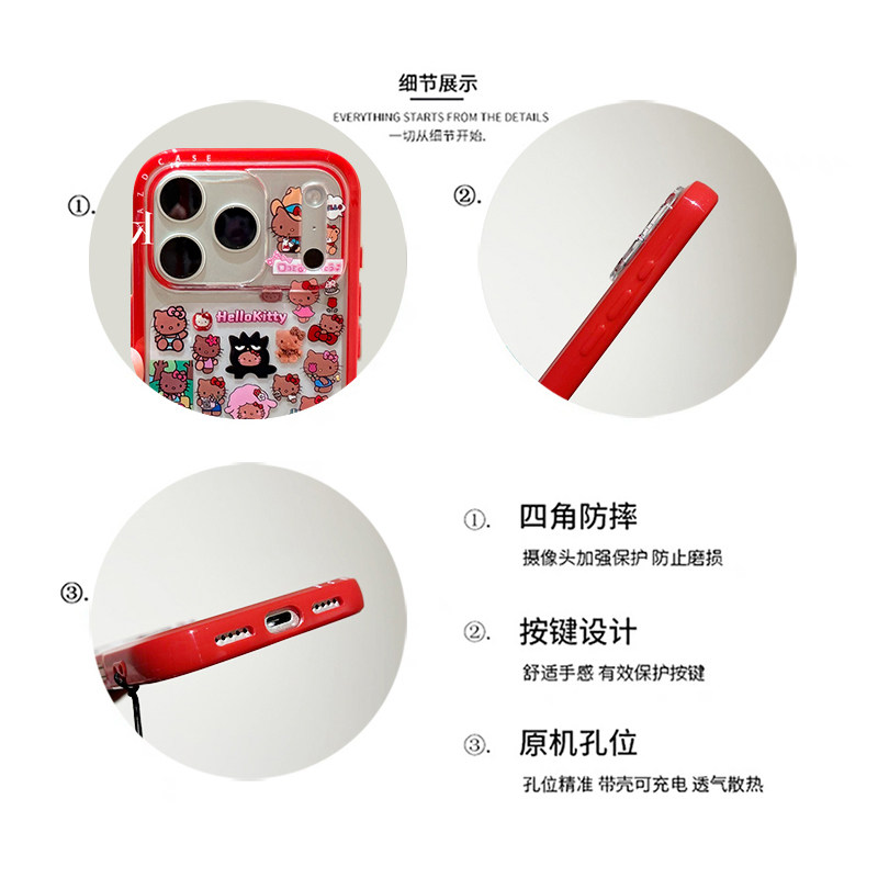 kaia韩系ins卡通哈喽kt插画适用苹果17promax手机壳iphone16pro新款13女14pro带链条15pro全包透明防摔手机套