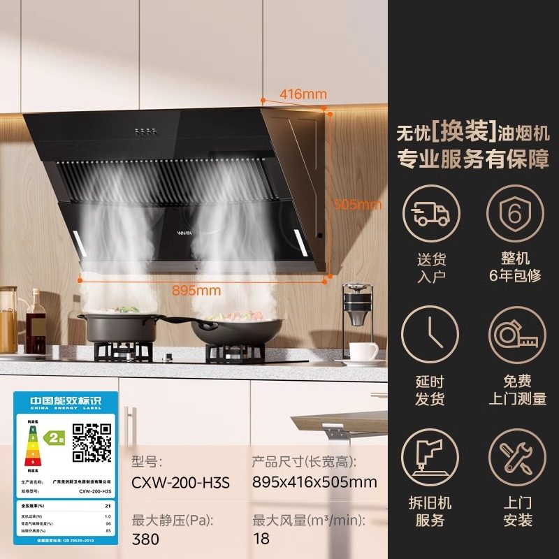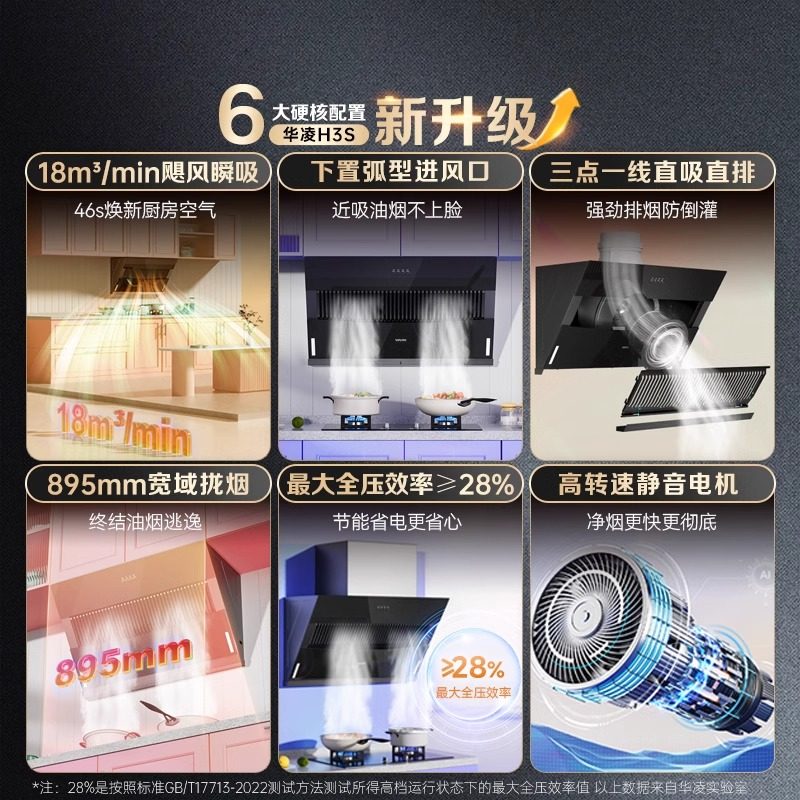 华凌油烟机燃气灶套装侧吸式家用大吸力厨房三件套官方旗舰店H3S