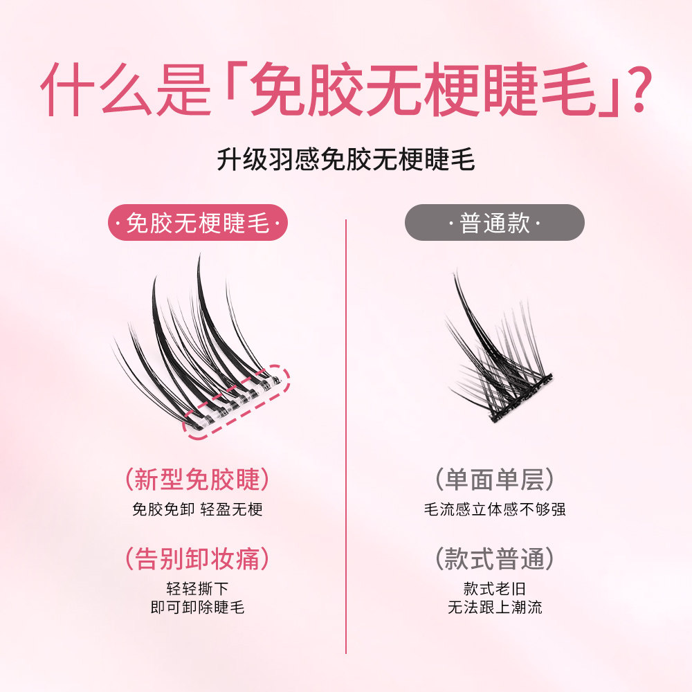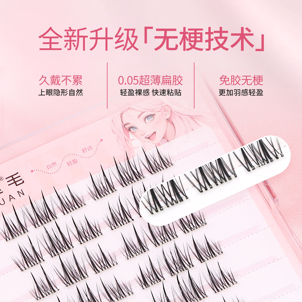 无梗免胶免卸纯欲双尖太阳花隐形假睫毛轻盈自粘分段式新手好贴