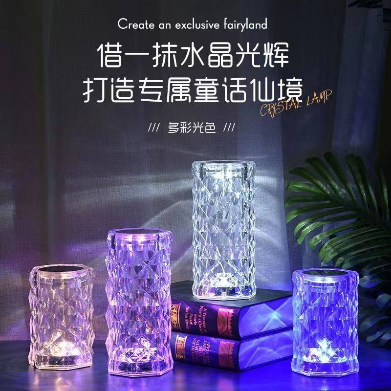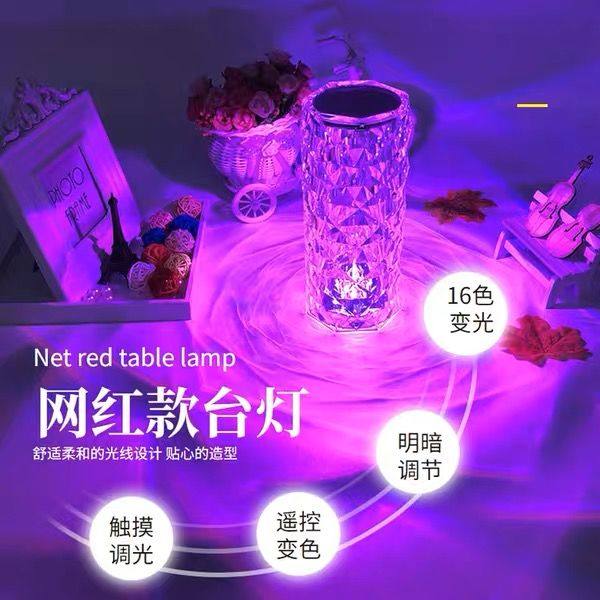 水晶玫瑰花氛围台灯网红ins风卧室床头LED触摸小夜灯浪漫情调装饰