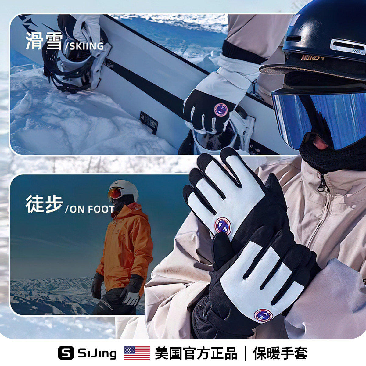 滑雪手套女冬季防水防风加厚防寒保暖触屏户外冬天骑行骑车登山男
