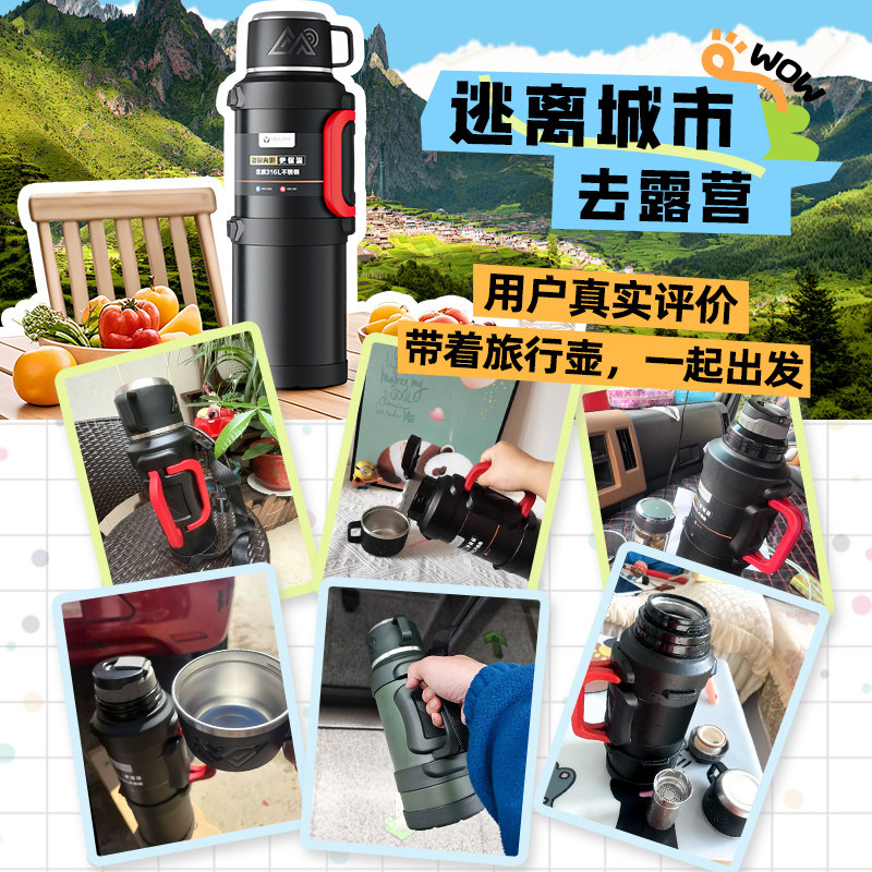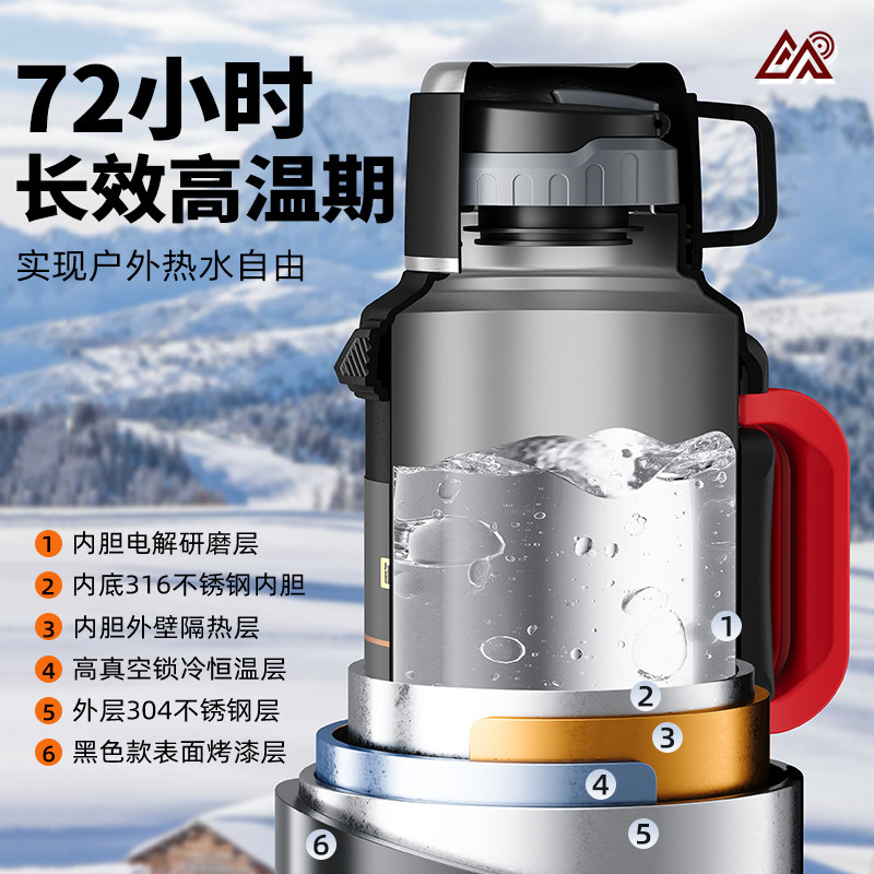 手提保温杯大容量热水壶保温壶外出不锈钢户外工地旅游热水瓶便携
