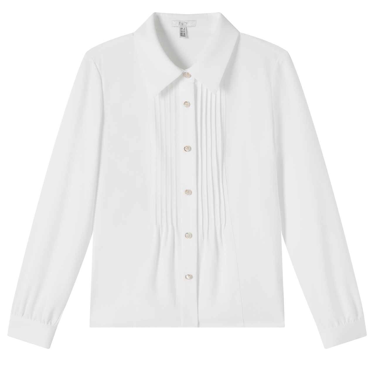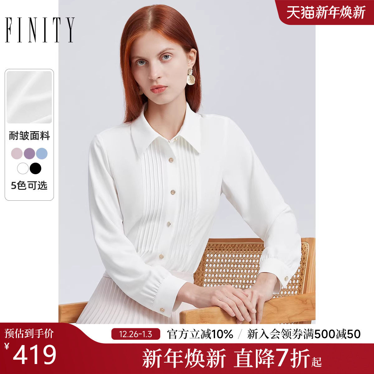 菲妮迪衬衫2025年秋季新款简约条纹设计感时尚气质休闲白色上衣女
