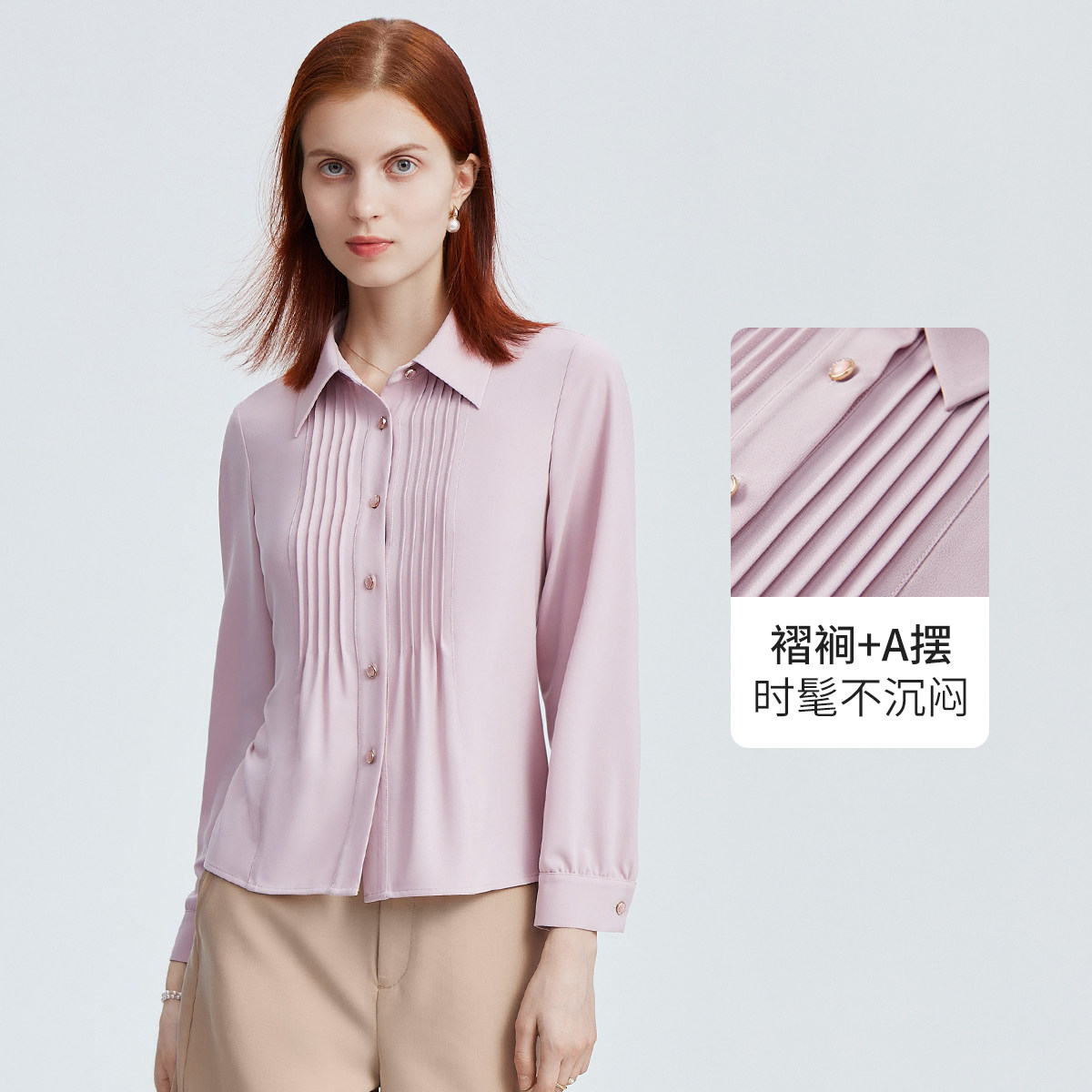 100棉|罗蒙春秋女士长袖衬衫竖条纹休闲百搭宽松衬衣女上衣外套