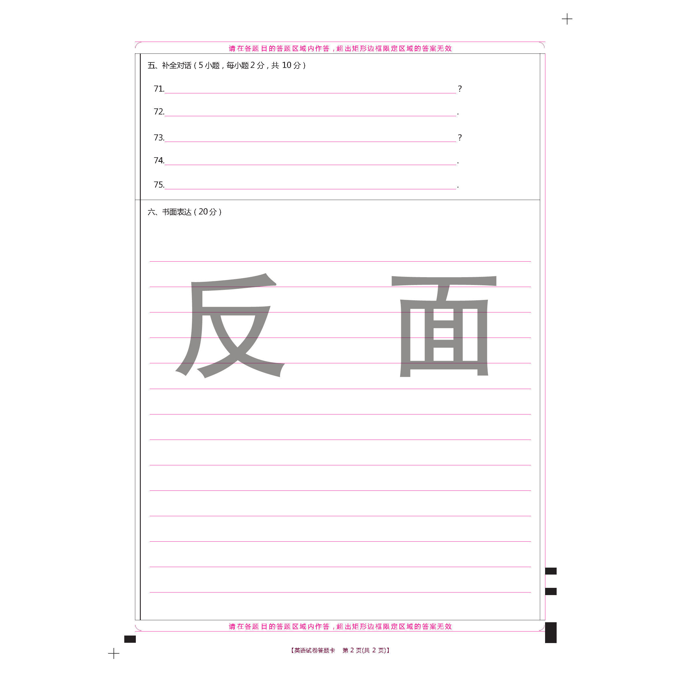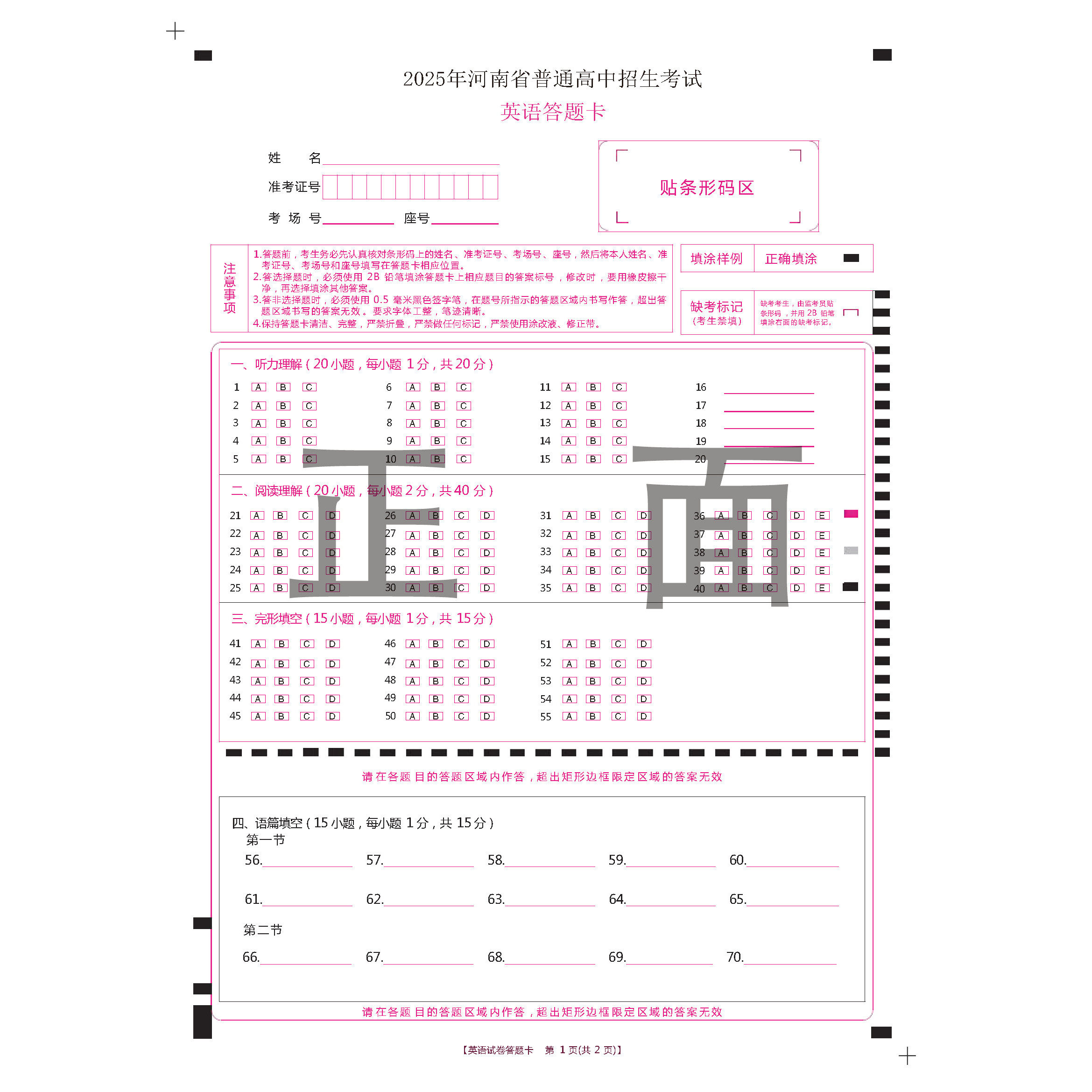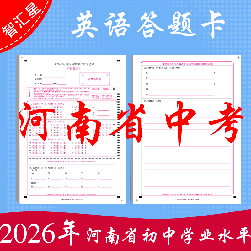 2025年 河南省中考英语模拟答题卡A4双面 120克双胶纸媲美考试纸张 支持定制各类答题卡