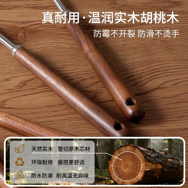 316不锈钢锅铲套装炒勺汤勺漏勺胡桃木柄家用厨具铁锅炒菜铲子