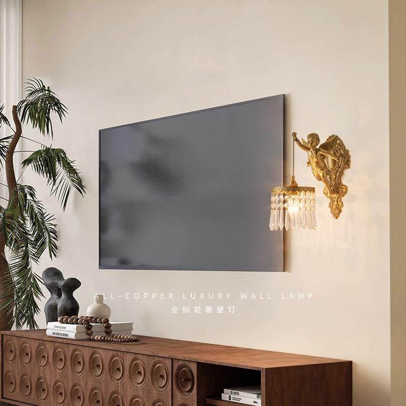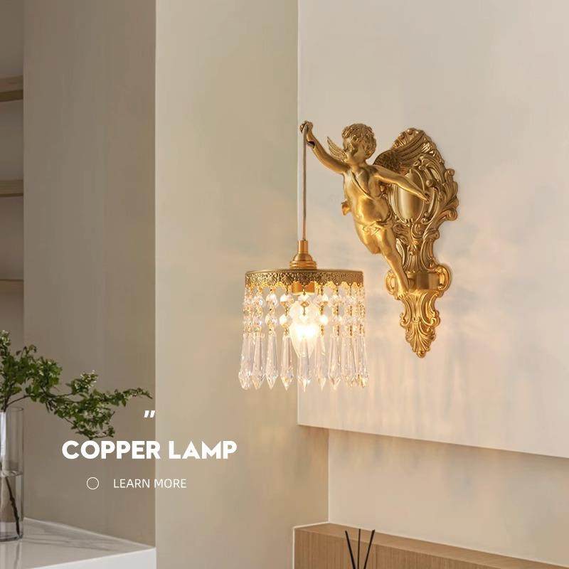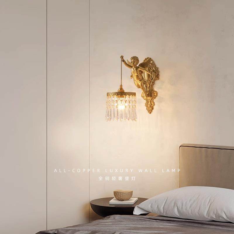 复古法式全铜天使吊灯Vintage中古风格时尚床头过道餐厅水晶壁灯