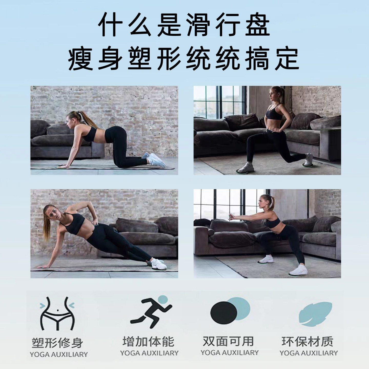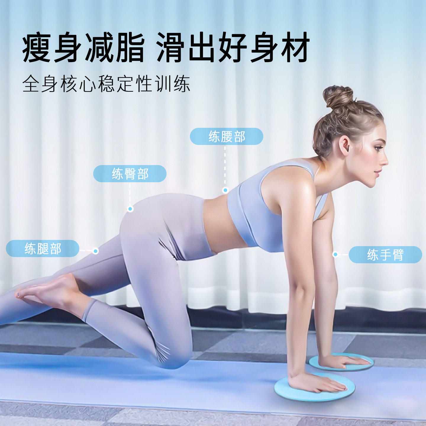 滑行盘健身家用瑜伽普拉提瘦腿训练器运动青蛙趴神器膝盖垫滑行板