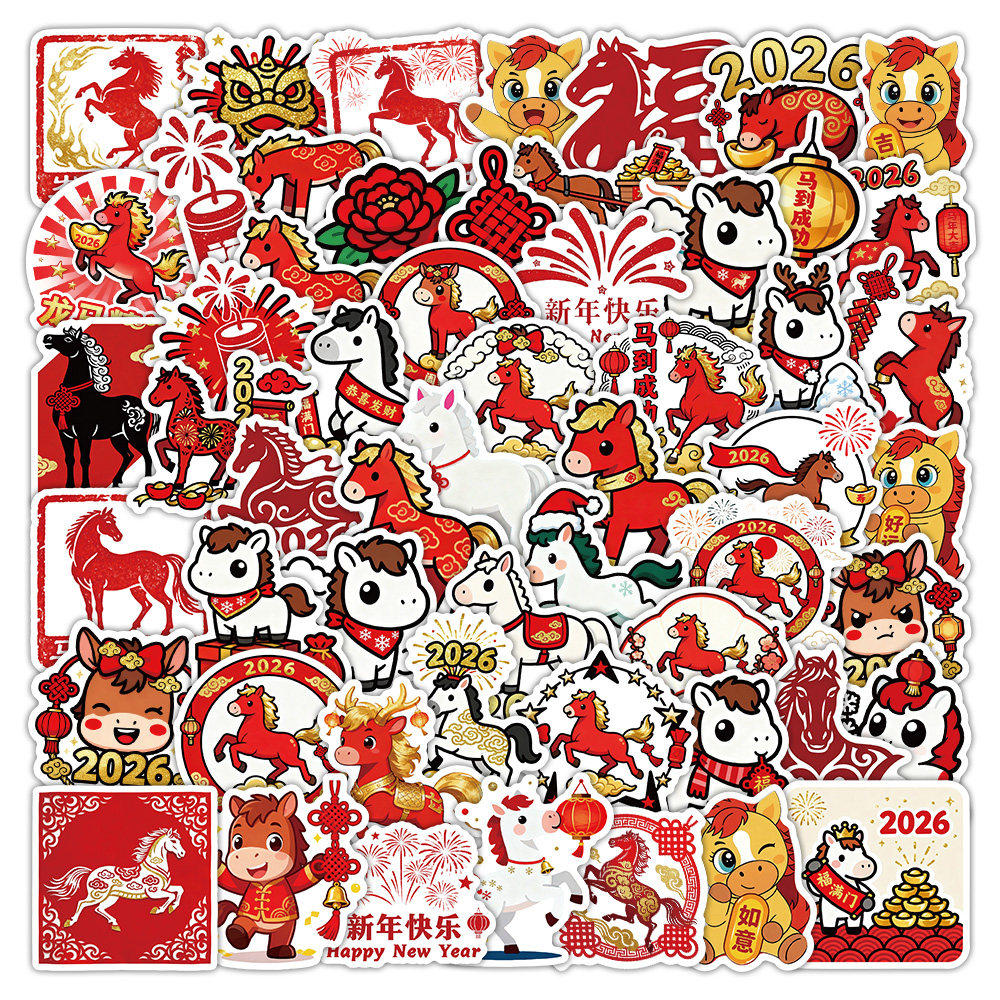 2026新年装饰贴纸马年氛围场景布置手机壳DIY包装元旦玻璃粘贴画
