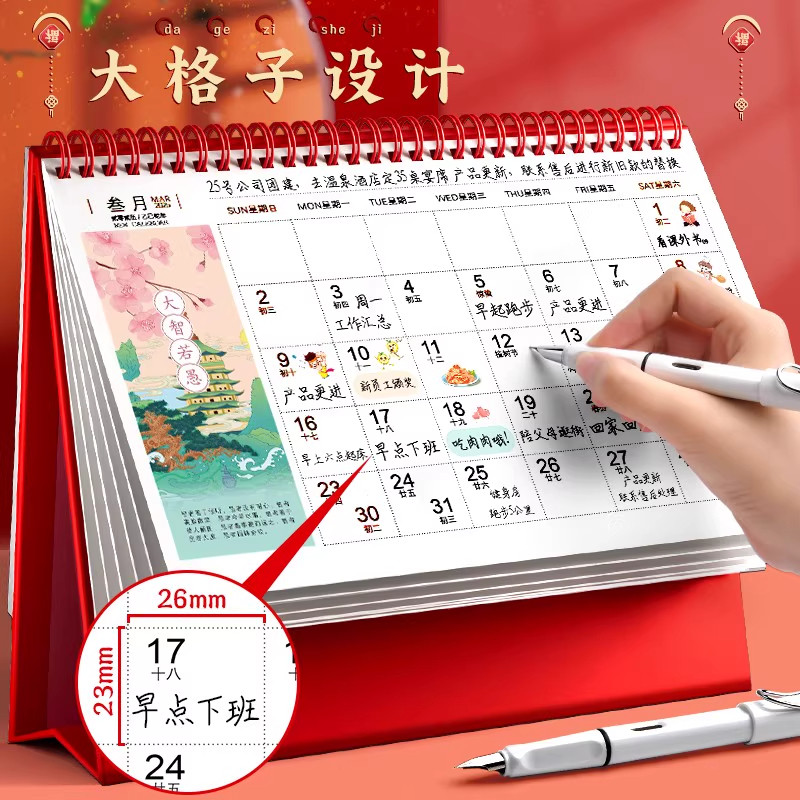 台历2026年新款日历定制logo创意简约小清新韩式办公年历个性中国风桌面摆件商务工作记事计划本订制广告月历