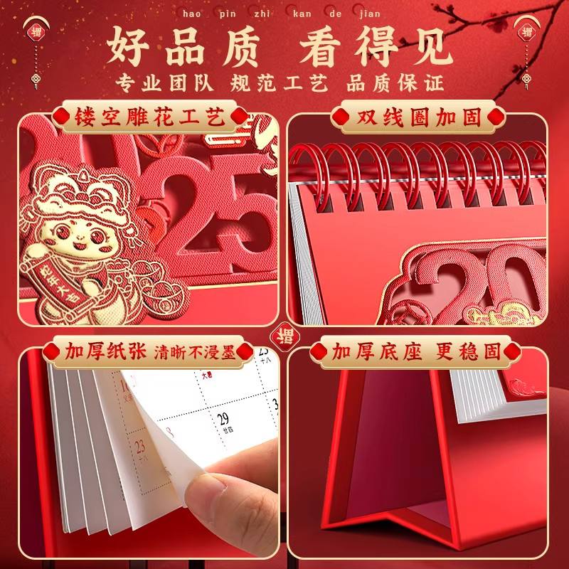 台历2026年新款镂空日历定制创意新年喜庆月历公司礼品订制办公商务桌面小日历26年马年记事小台历架摆件定制