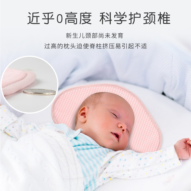 萌森鸭婴儿枕头0到6个月新生儿纯棉纱布平枕四季通用宝宝安抚枕垫