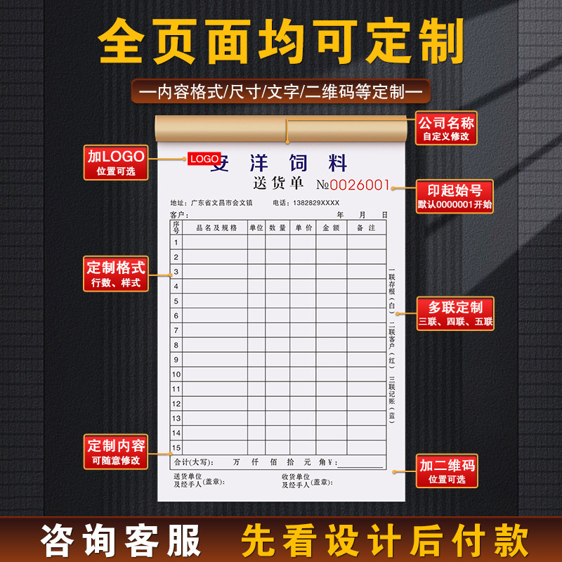 【饲料店专用】送货单猪鱼羊鸡鸭牛销售清单兽药鸡苗欠条台账票据
