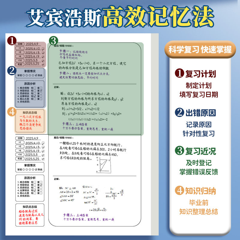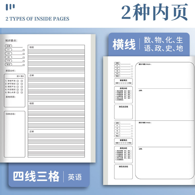 初中生专用错题本B5高颜值数学英语物理艾宾浩斯实用型科目本9科分区改错纠错本初一初二初三错题整理笔记本