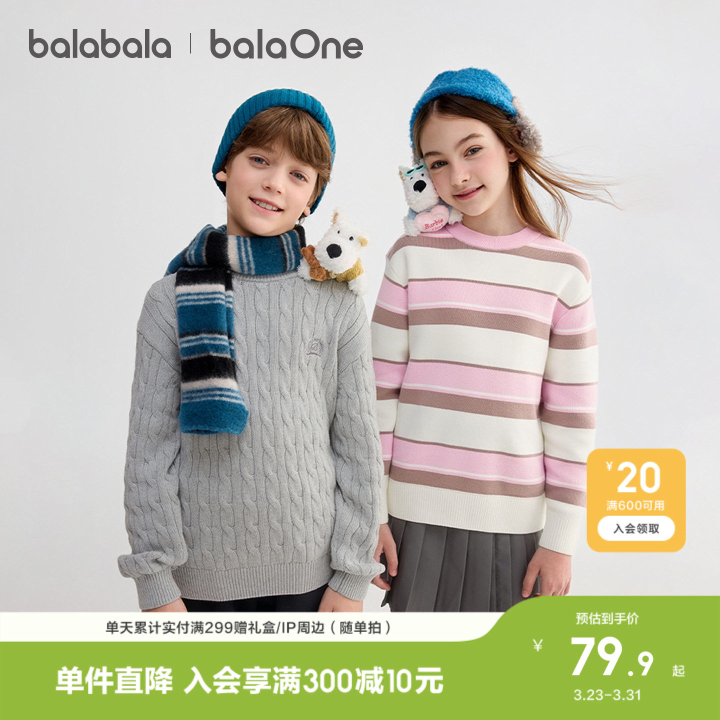 巴拉巴拉童装儿童毛衣男童女童2026新款冬装宝宝针织衫亲子装上衣