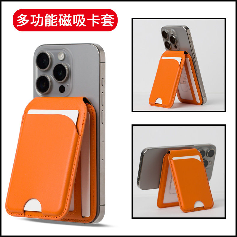 磁吸MagSafe卡包适用苹果16手机pro公交卡max皮革卡套折叠iphone卡槽证件收纳桌面支架背贴翻盖插卡钱包