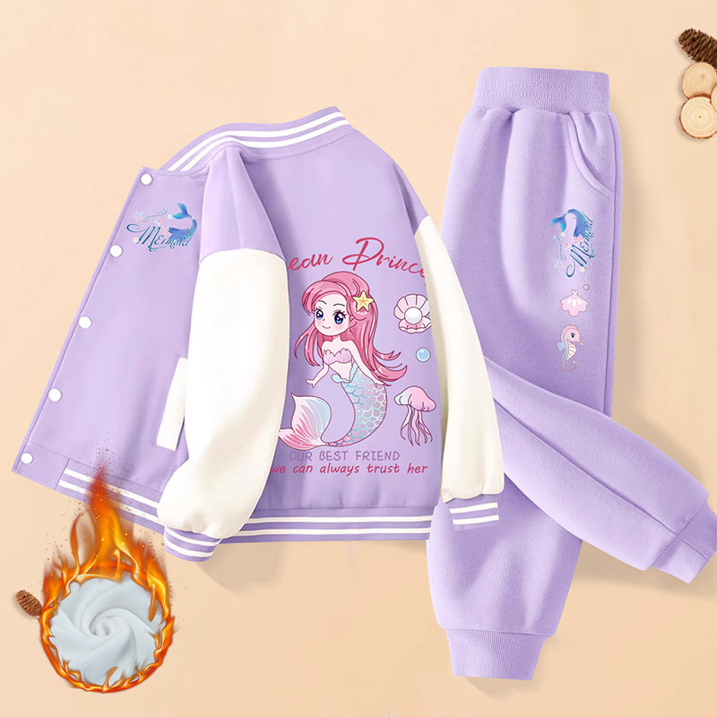 女童棒球服套装2025秋冬新款儿童上衣裤子两件套冬季女孩休闲衣服
