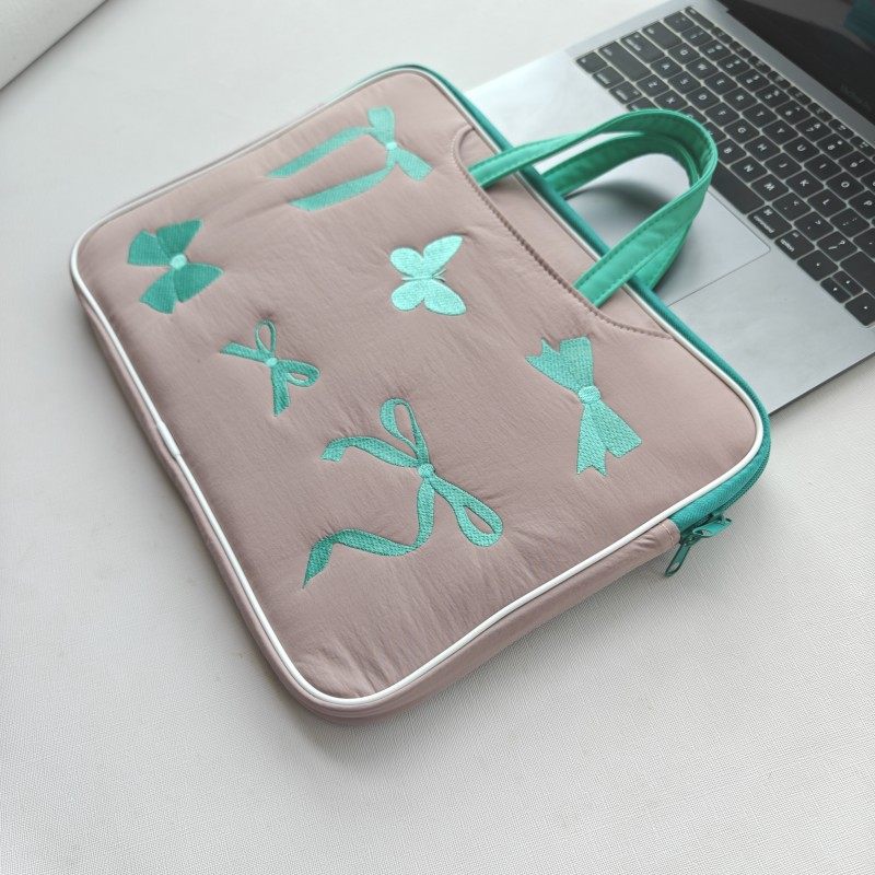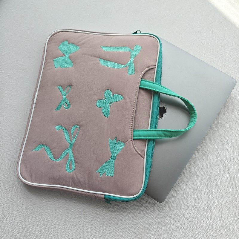 刺绣蝴蝶结加棉适用苹果华为小米保护13寸电脑包太空棉13.3电脑内胆包14-15寸笔记本收纳包手拿包
