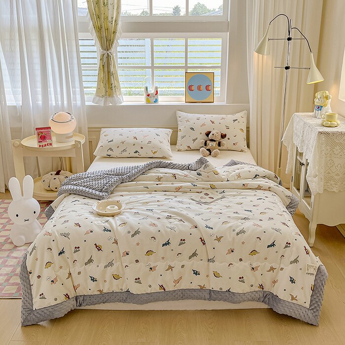 A类全棉双层纱夏凉被四件套空调被可机洗薄款被子夏季夏被三件套4