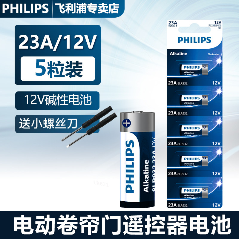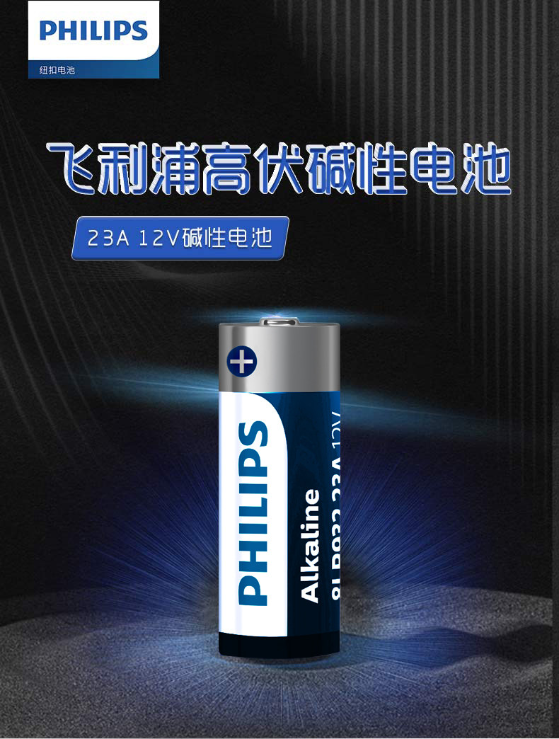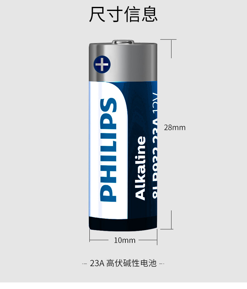 飞利浦27A/23A12V小号碱性电池适用于电动卷闸门/车辆遥控器/防盗