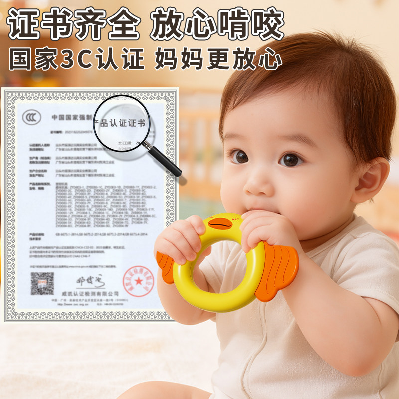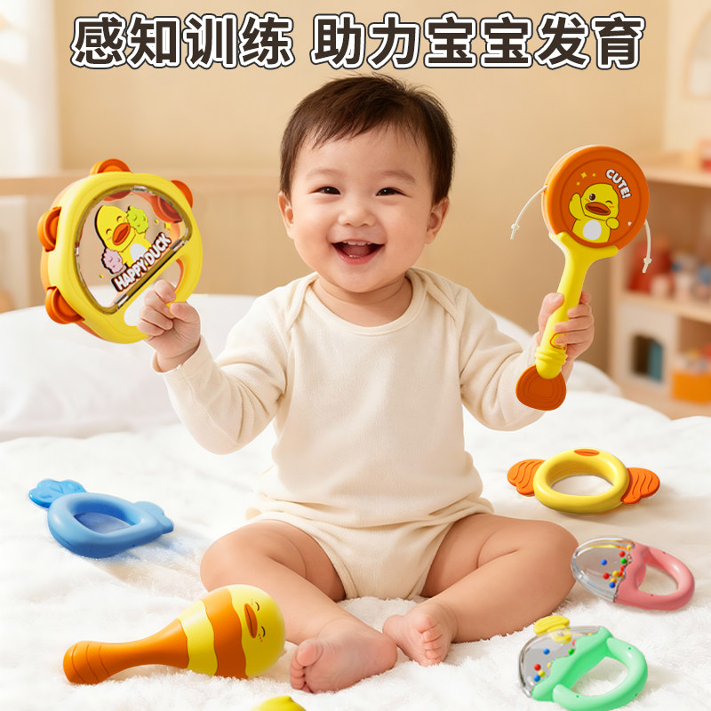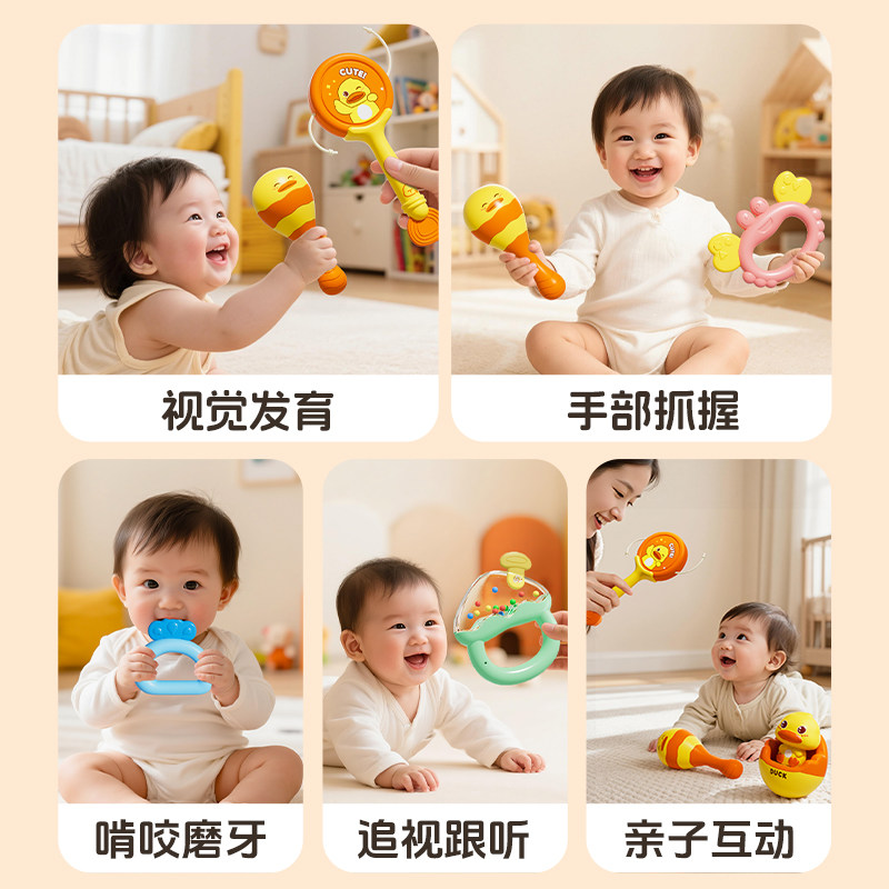 小黄鸭手摇铃新生婴儿0到6个月小月龄宝宝玩具可啃咬礼物抓握鸭子