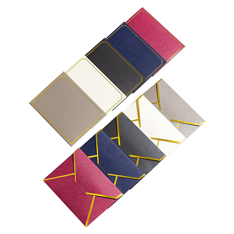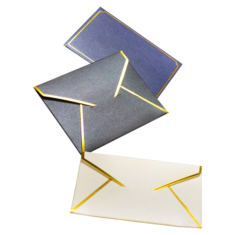 高档烫金珠光纸小信封套装ins风加厚西式会员卡证件照收纳复古卡片信封袋烫金印刷定制LOGO
