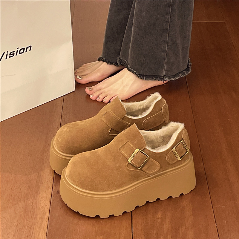 松糕厚底增高勃肯鞋女鞋2025新款秋冬雪地靴加绒乐福鞋毛毛二棉鞋