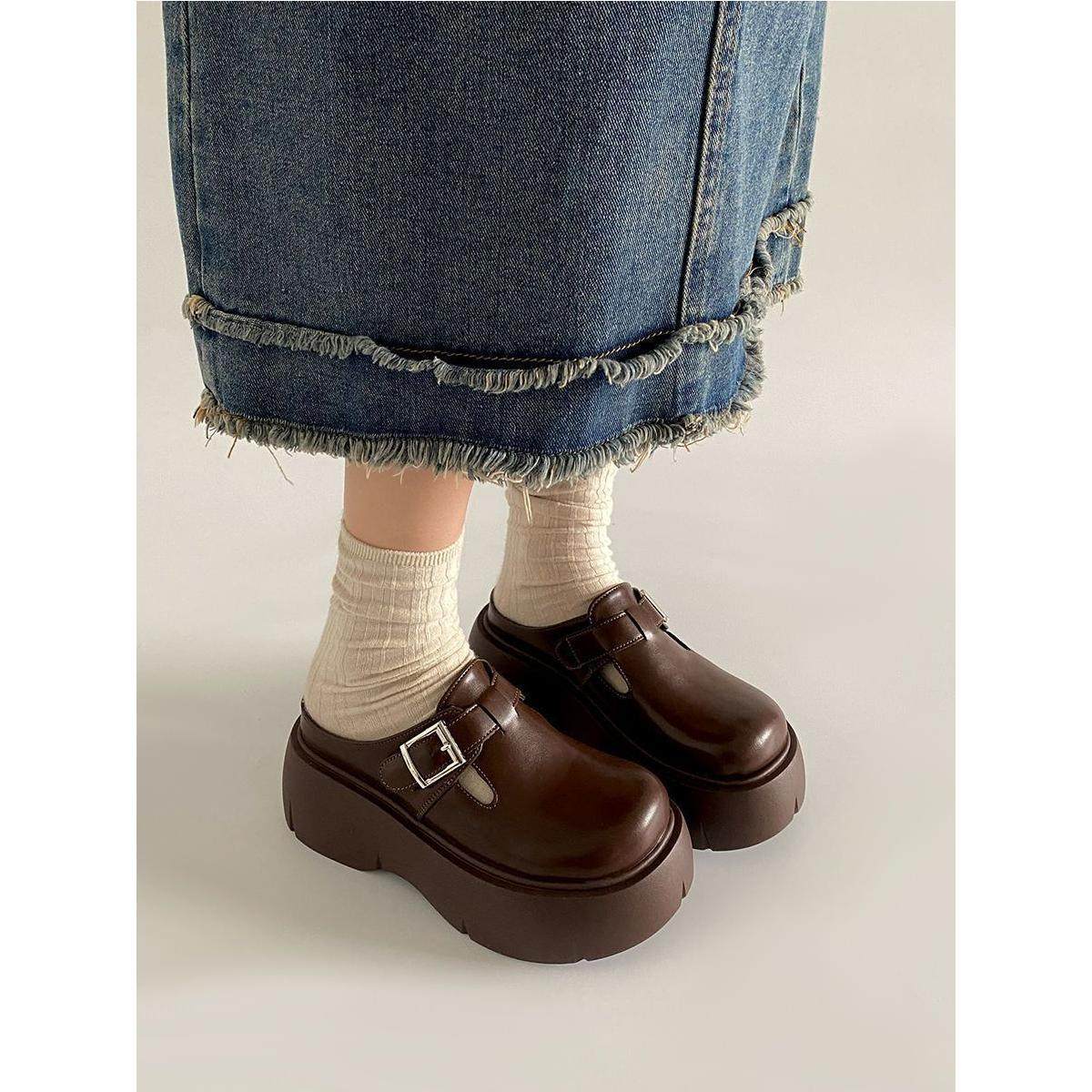 半拖勃肯鞋增高凉拖高级感厚底包头乐福鞋百搭松糕鞋英伦风单鞋