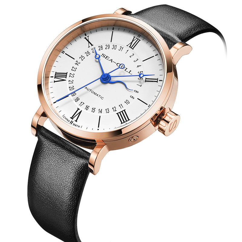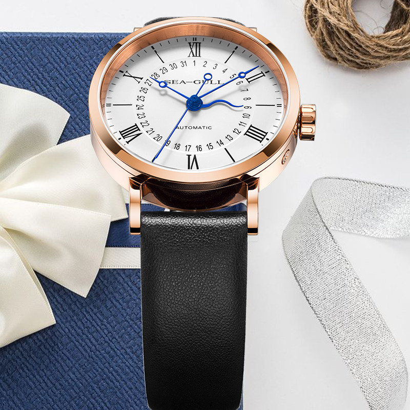 海鸥表情侣款男士女士自动机械表复古节日礼品似水流年日历6052
