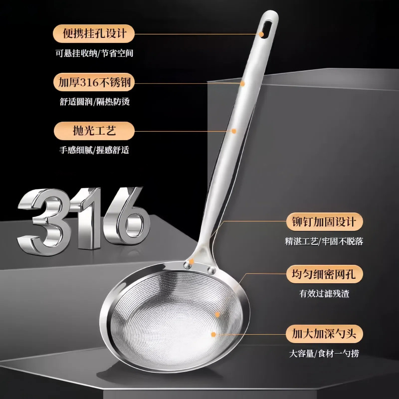 打沫勺316不锈钢漏勺家用厨房撇油勺过滤网筛火锅撇浮沫隔油勺