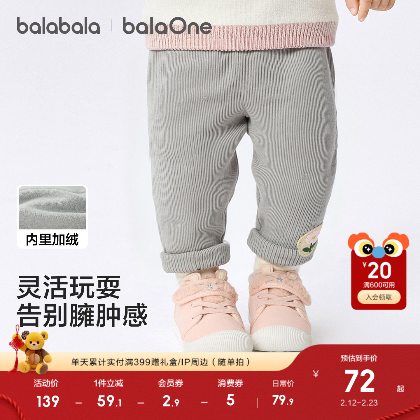 巴拉巴拉婴儿长裤加绒打底裤女童宝宝裤子秋冬装保暖2025新款百搭