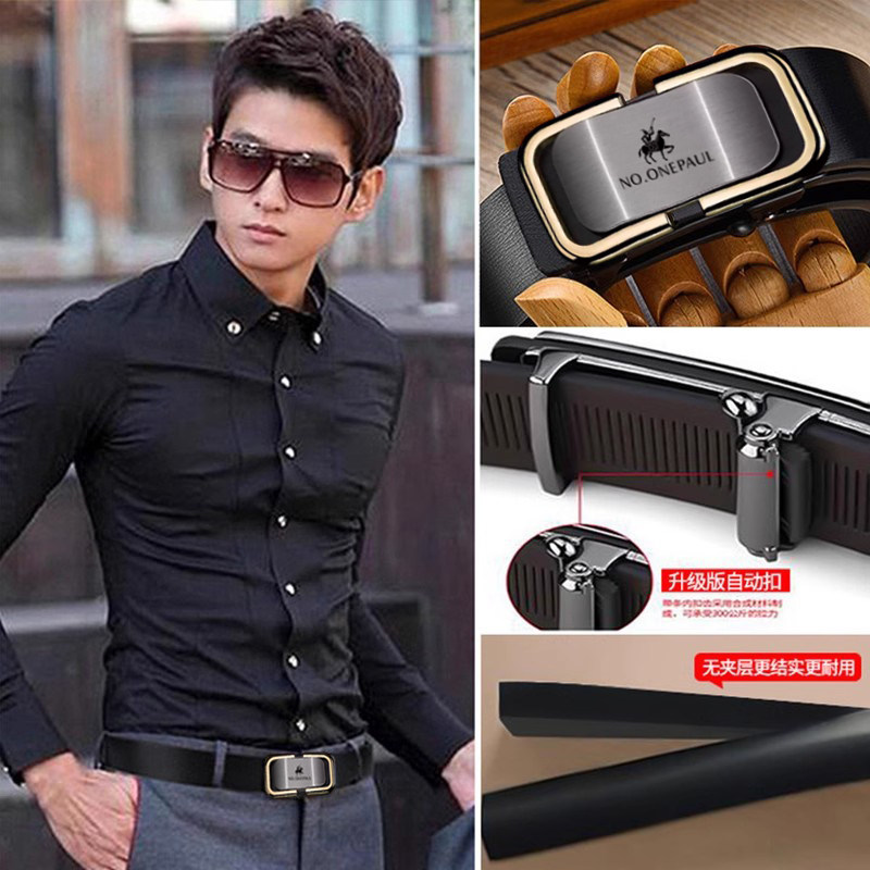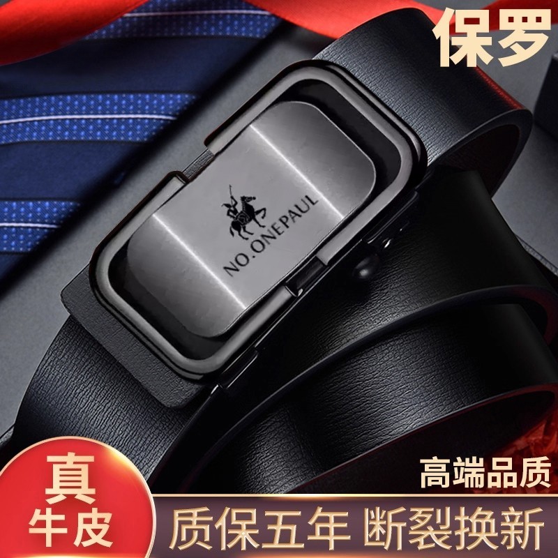 保罗皮带男士真皮自动扣头层腰带潮版青年中年商务百搭牛皮裤腰带