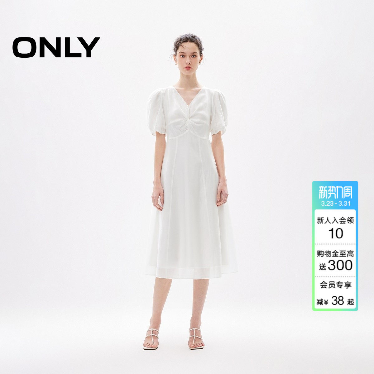 【油画裙】ONLY夏季气质仙女飘逸度假风印花收腰设计白色连衣裙