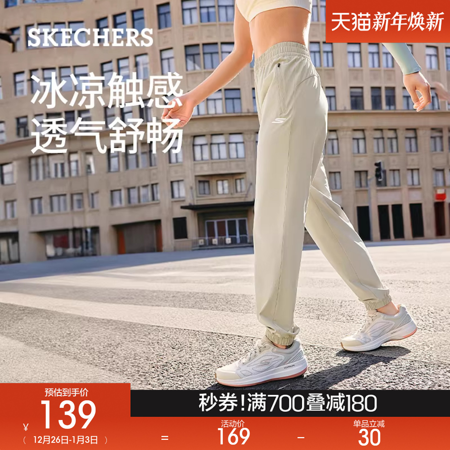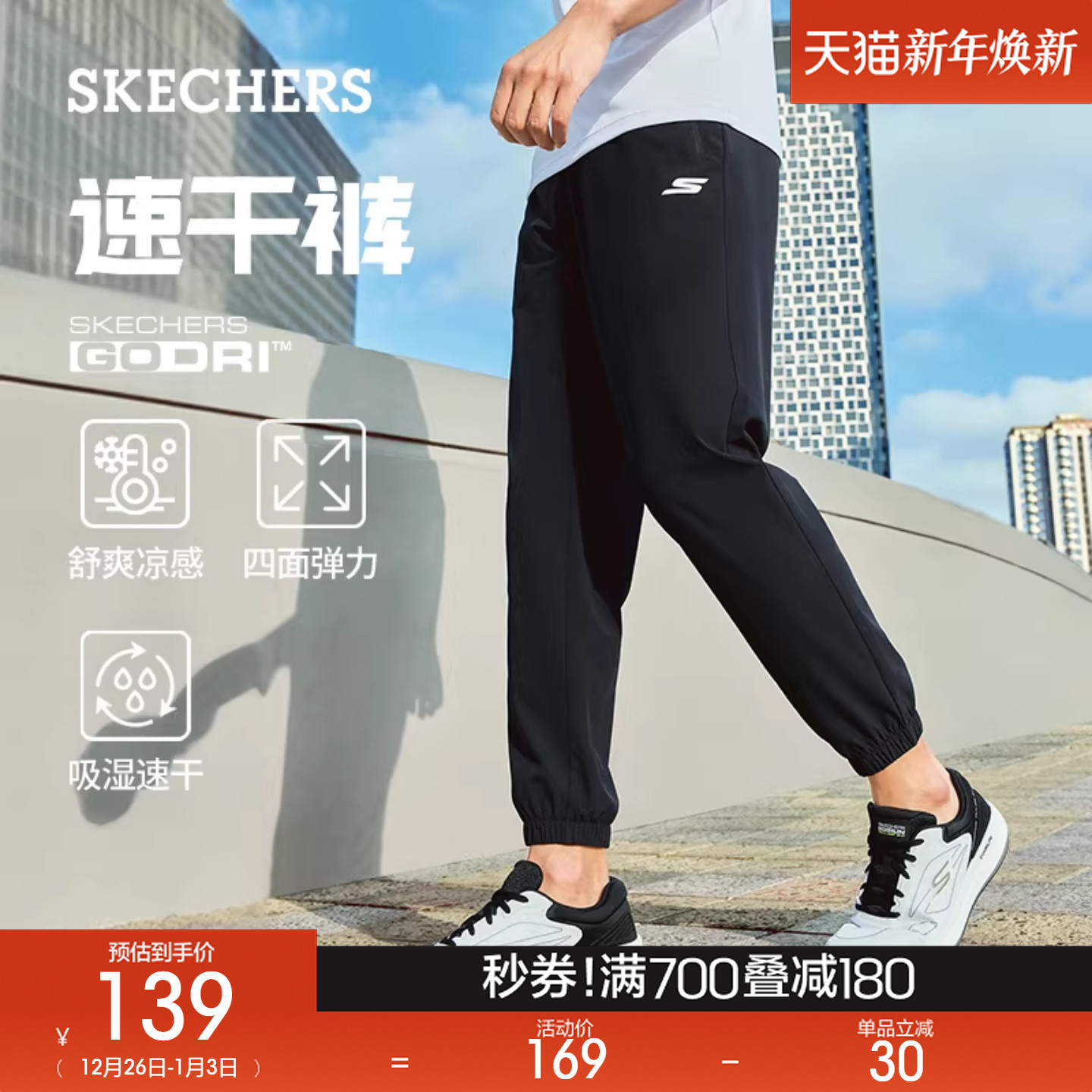 Skechers斯凯奇男士休闲裤梭织长裤直筒裤户外舒适运动弹力束脚裤