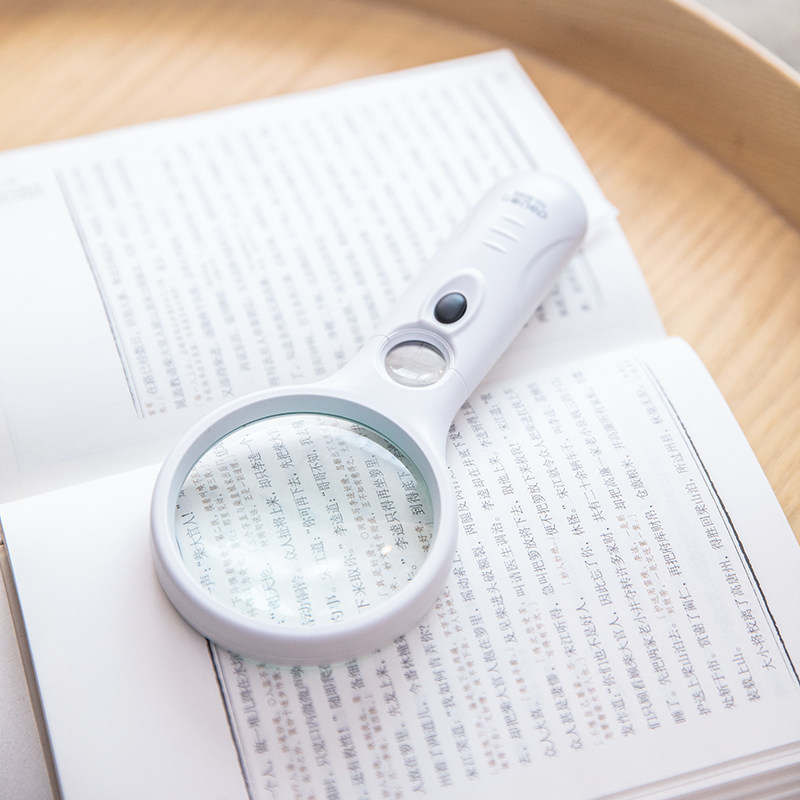 得力放大镜高清倍数高倍手持式带LED灯维修用扩大镜11倍老人儿童学生阅读