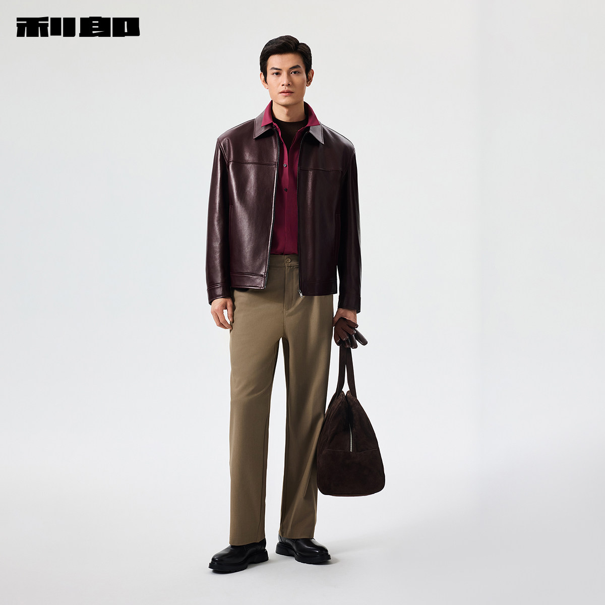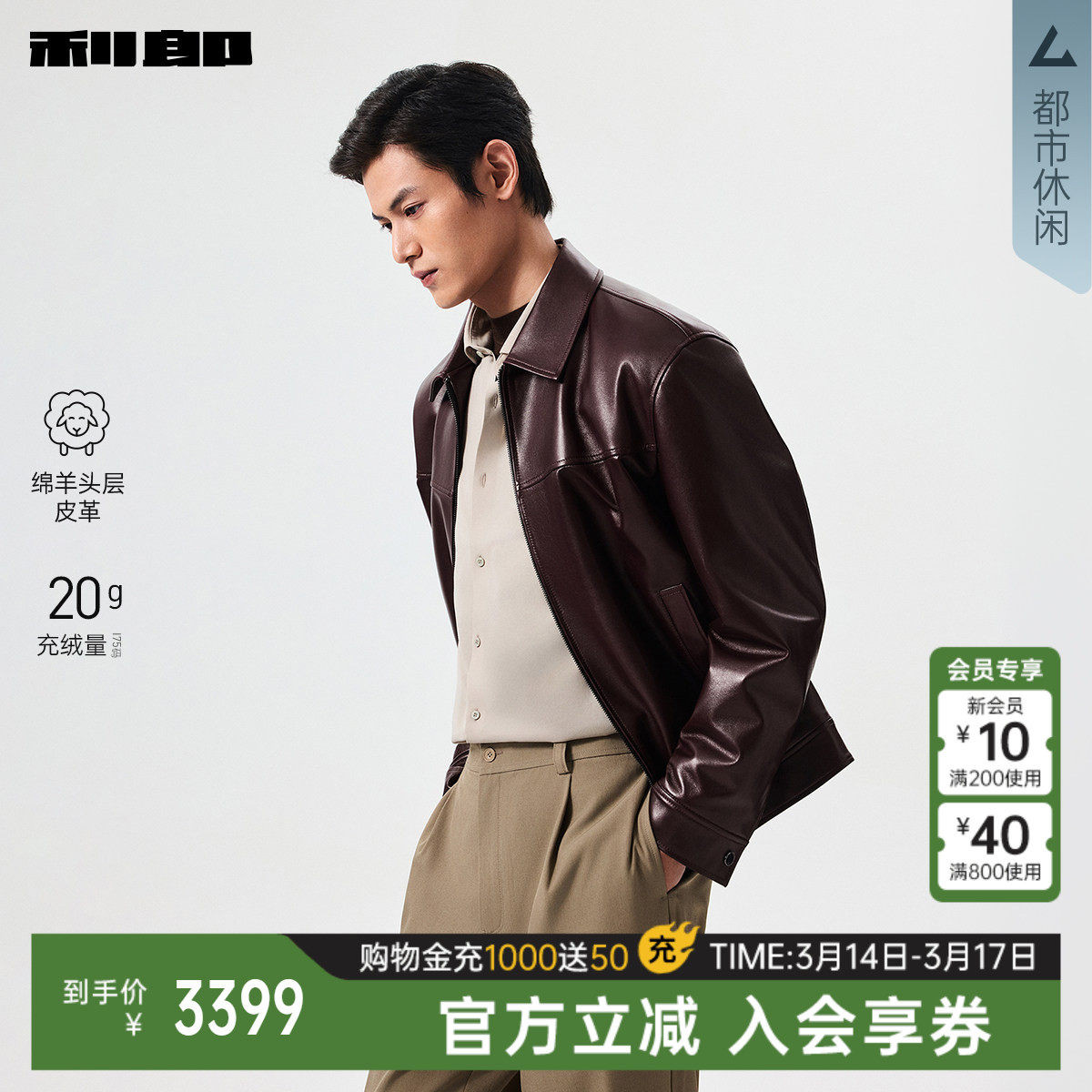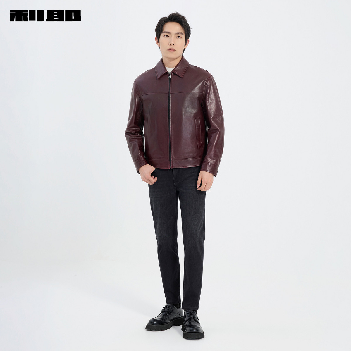 【绵羊头层皮革】利郎官方 皮衣男士冬季新款加绒翻领修身外套男