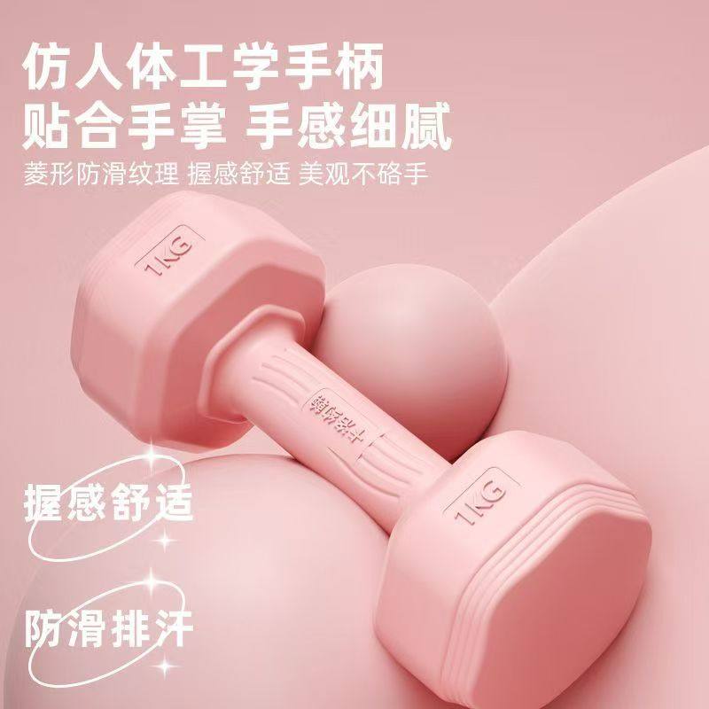 健身哑铃哑铃女士器材锻炼瘦手臂六角瑜伽胶家用运动包哑铃