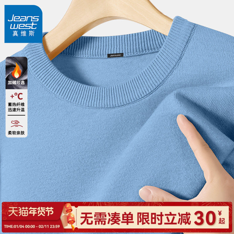GV真维斯毛衣男冬季针织衫男款蓝色圆领毛衫男士内搭秋冬打底衫C