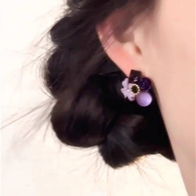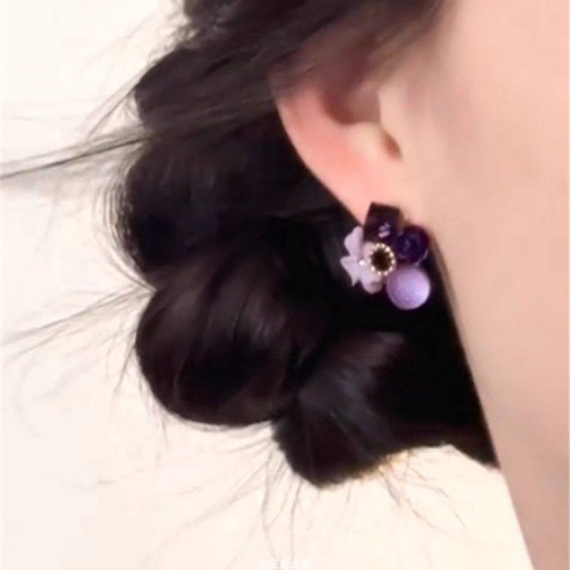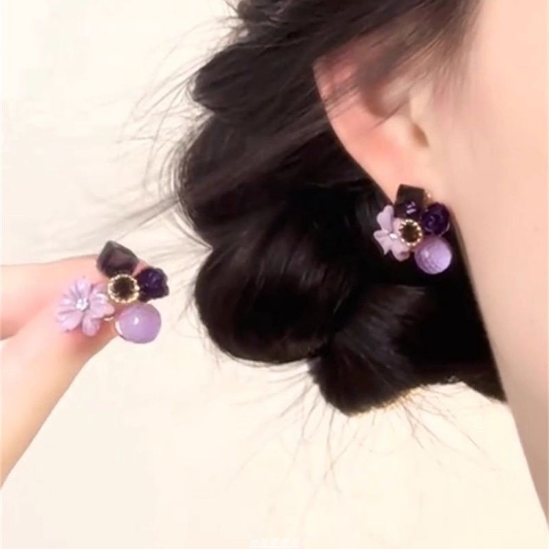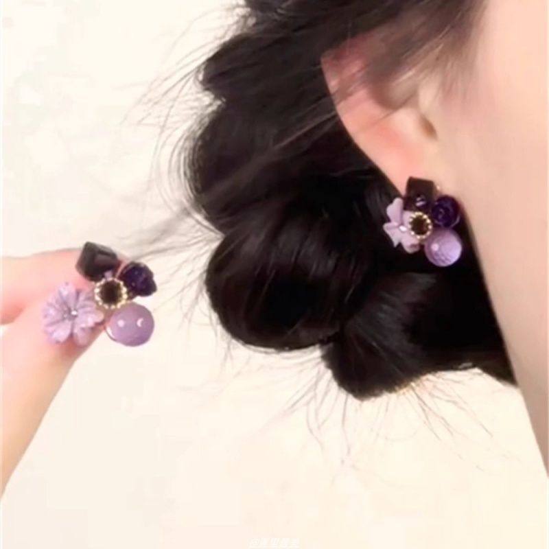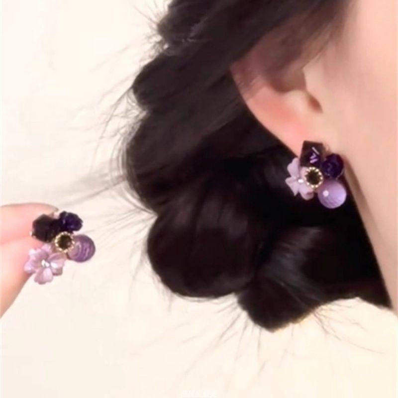 紫色水晶花瓣耳环女秋季爆款小众设计高级感轻奢耳钉耳饰